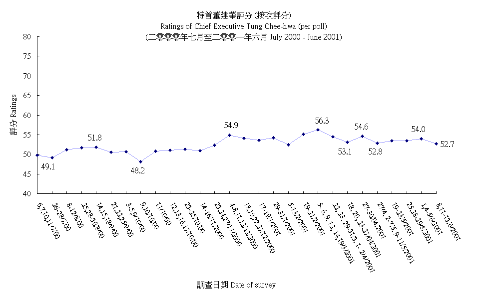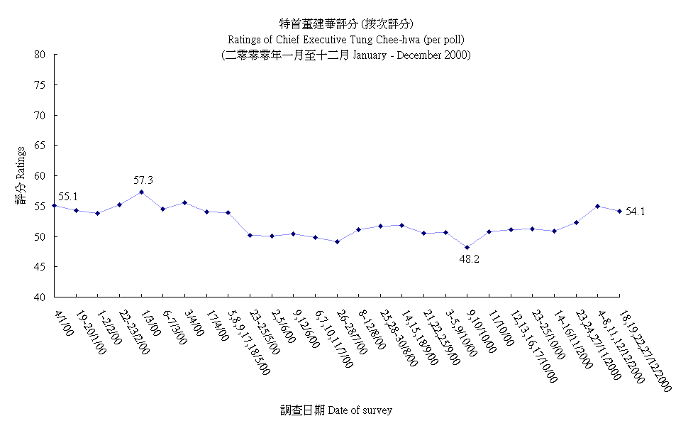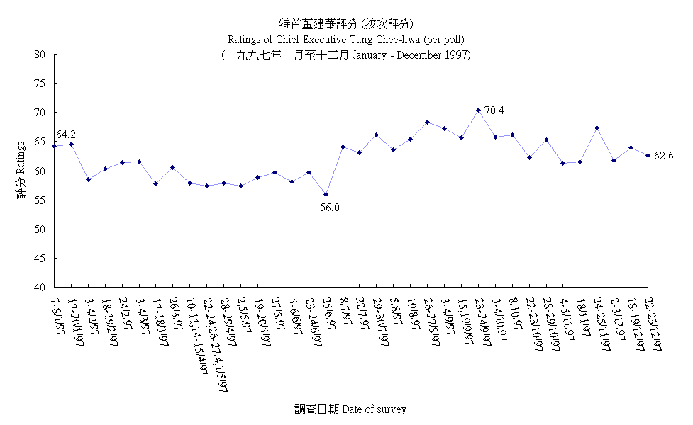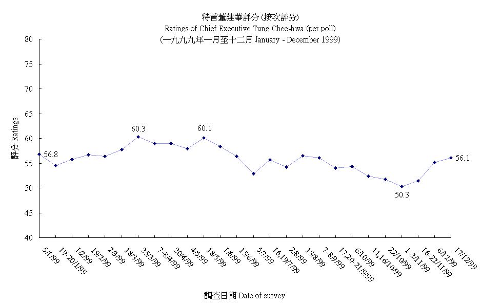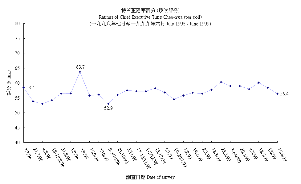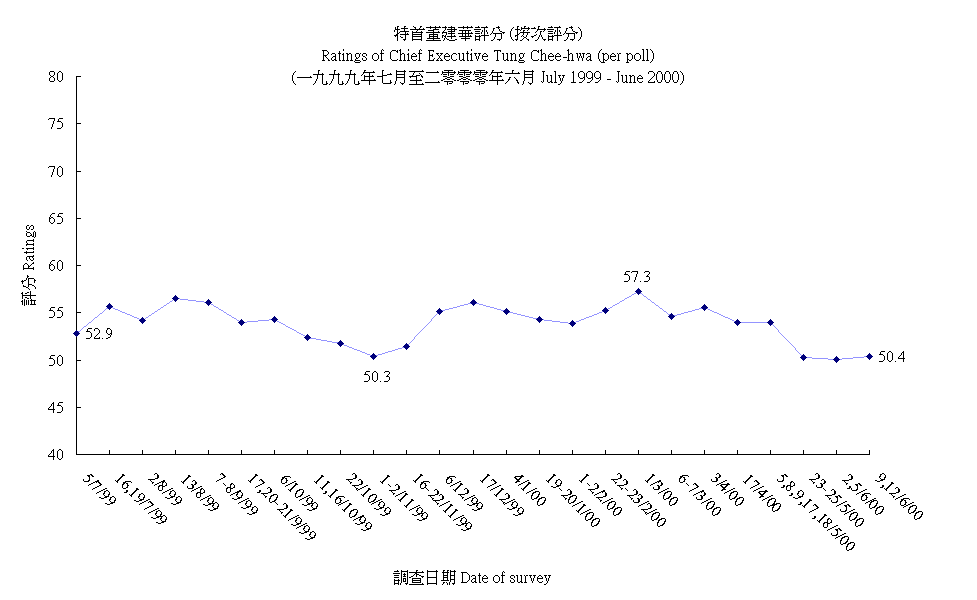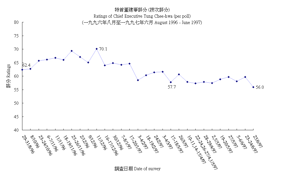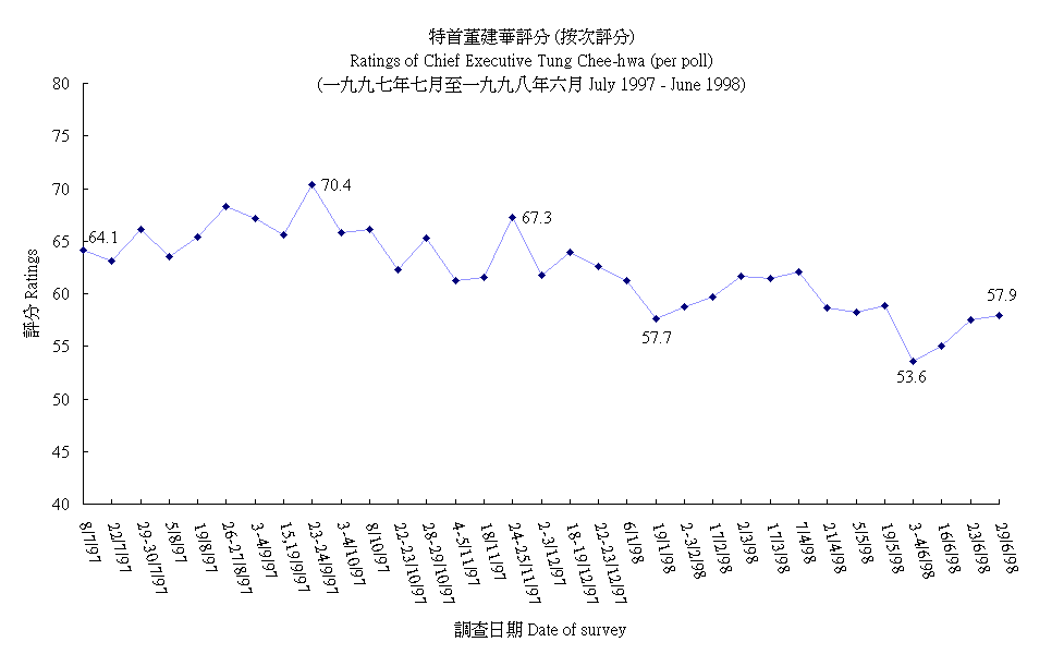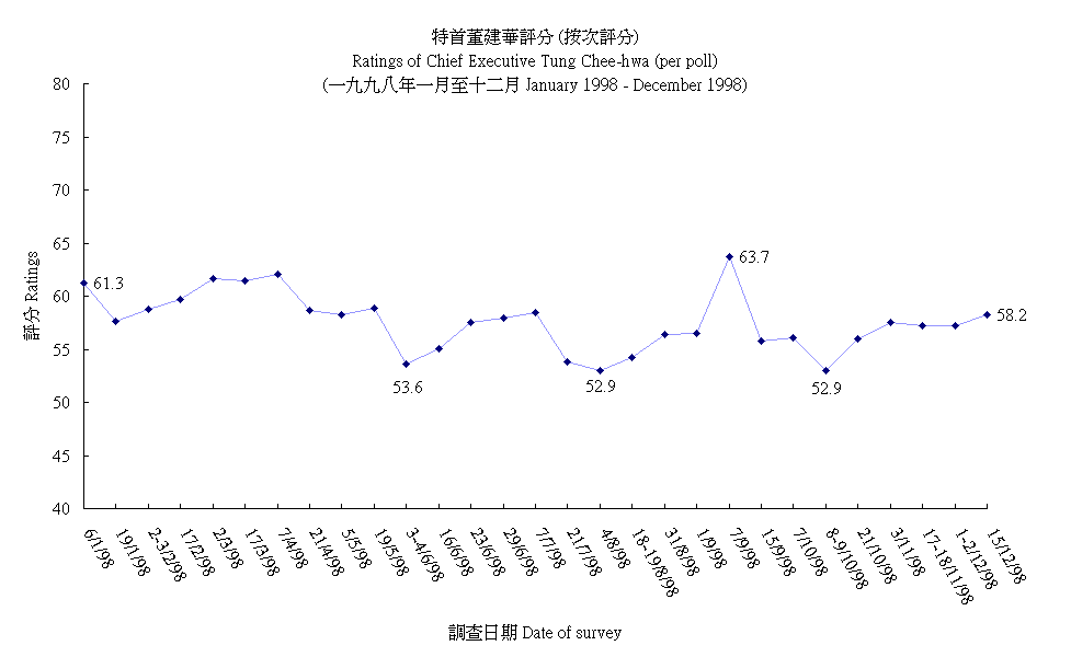 特首董建華評分 (按次計算) Rating of Chief Executive Tung Chee-hwa (per poll) |