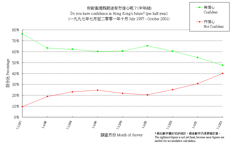 市民對香港前途的信心 (半年結) People's Confidence in HK's Future (per half-year) |