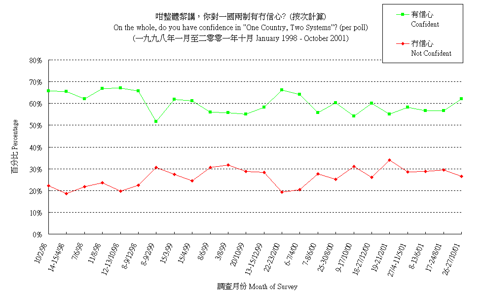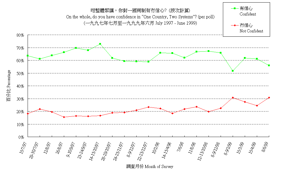 市民對一國兩制的信心 (按次計算) People's Confidence in "One Country, Two Systems" (per poll) |