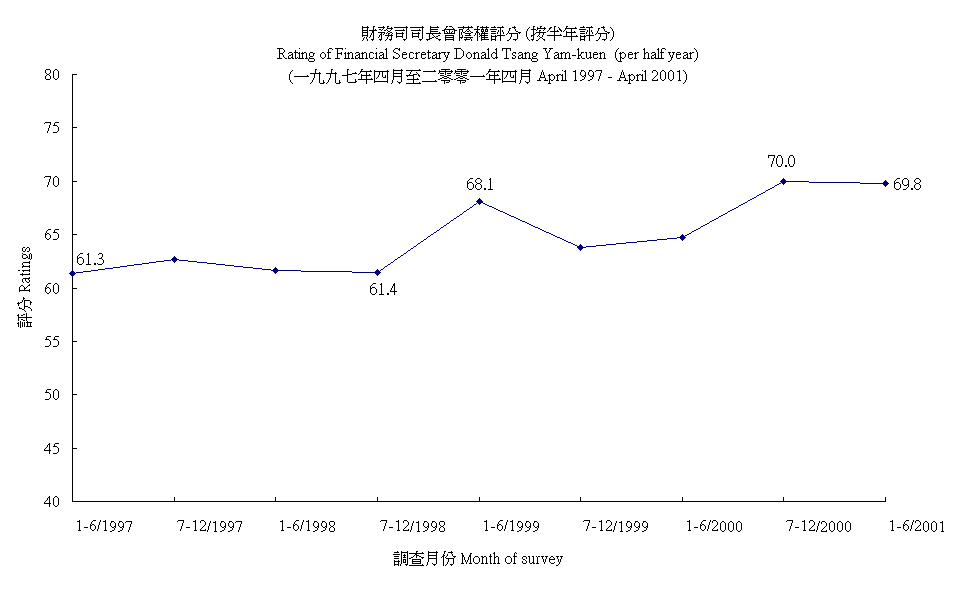 財政司司長曾蔭權評分 (按半年計算) Rating of Financial Secretary Donald Tsang Yam-kuen (per half year) |