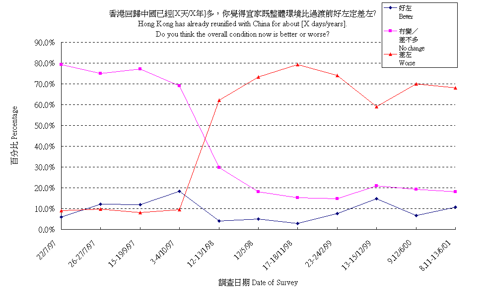 香港回歸中國已經[X天/X年],你覺得宜家既整體環境比過渡前好左定差左? |