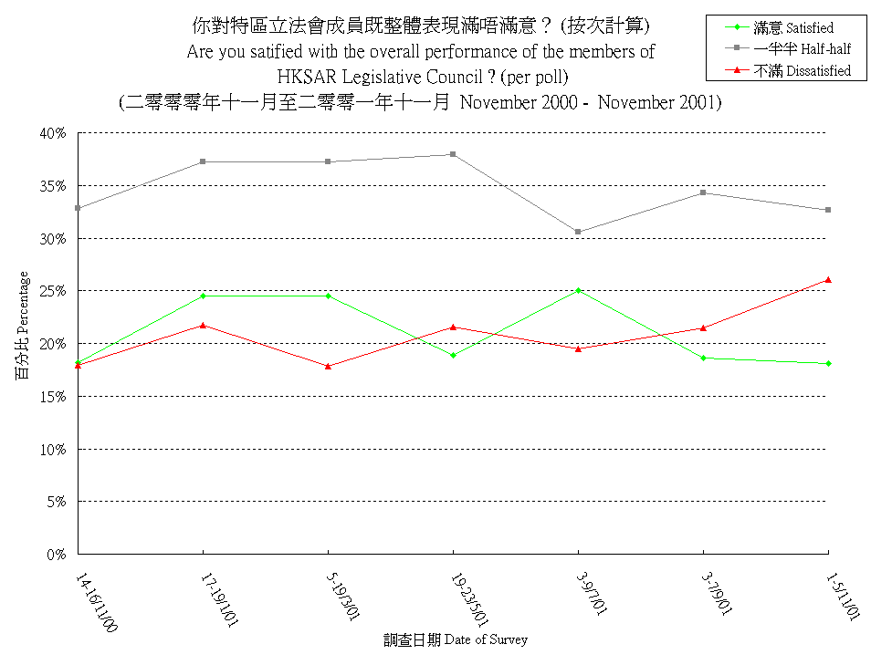 市民對特區第二屆立法會議員表現的滿意程度 (按次計算) People's Satisfaction with the Performance of Members of the Second HKSAR Legislative Council (per poll) |