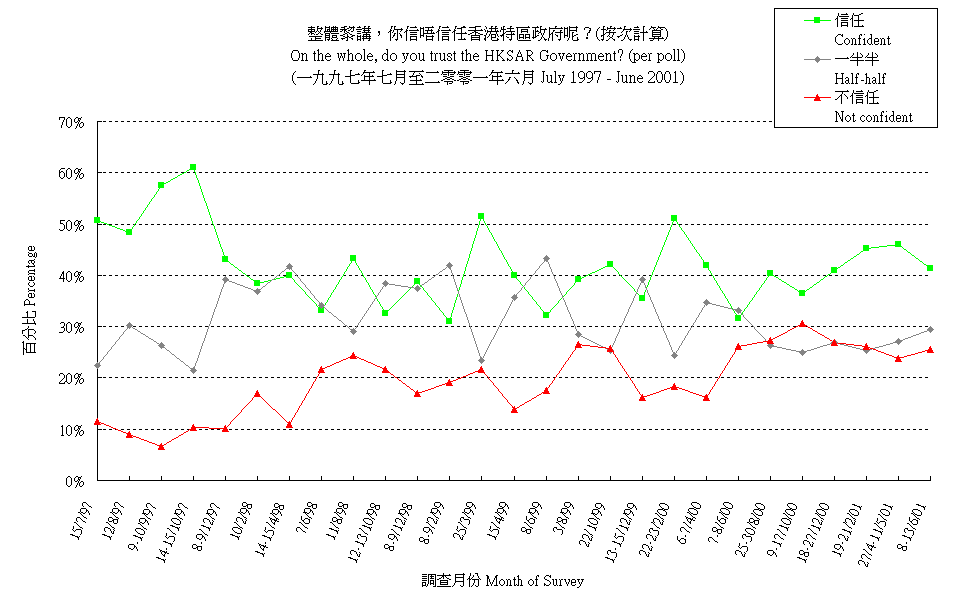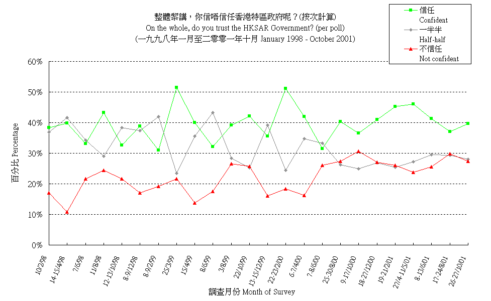 市民對香港特區政府的信任程度 (按次計算) People's Trust in the HKSAR Government (per poll) |